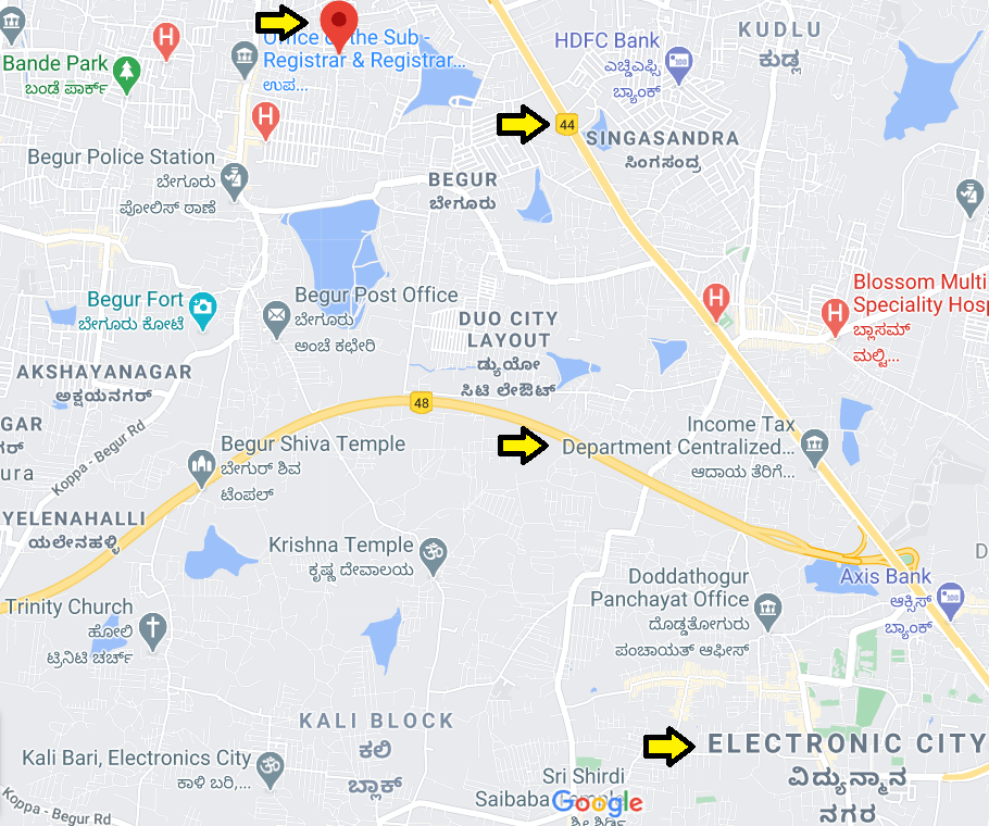 Located 7 km from Electronics City, and close to both NH 44 and NH 48 (NICE) roads.